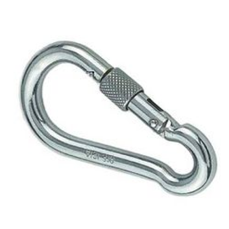Карабин пружинный с резьбовой предохранительной втулкой и кольцом 10х100 АРТ 8232 нержавеющая сталь А4